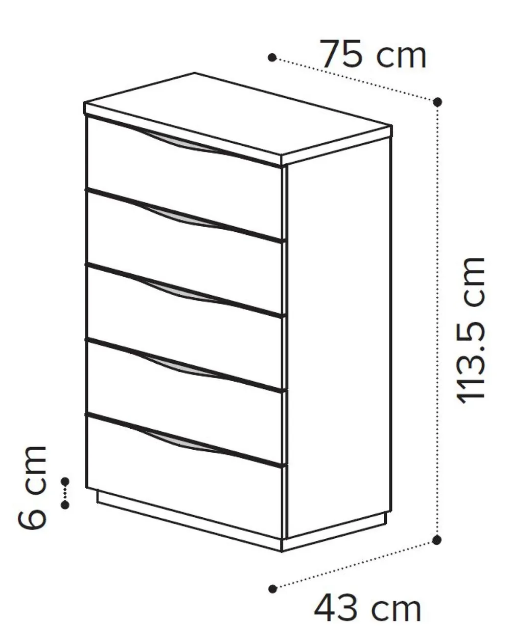 Dimensions : W 75cm x D 43cm x H 113.5cm