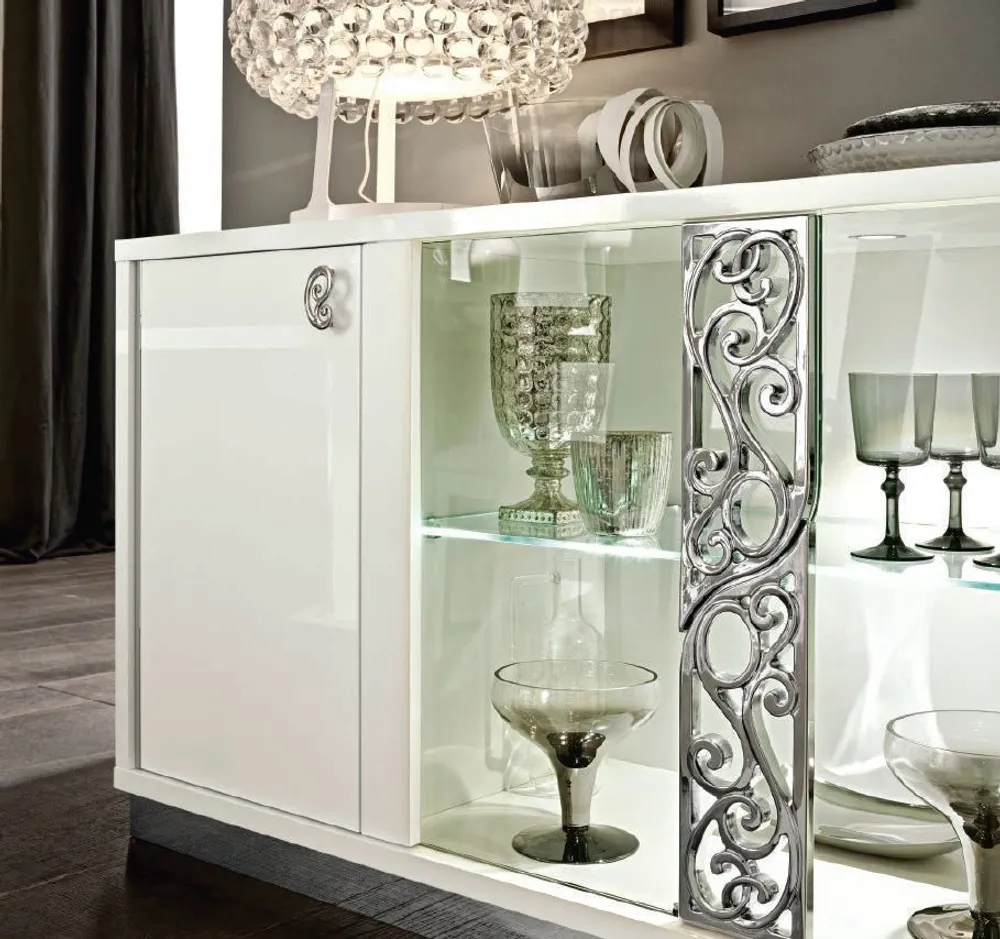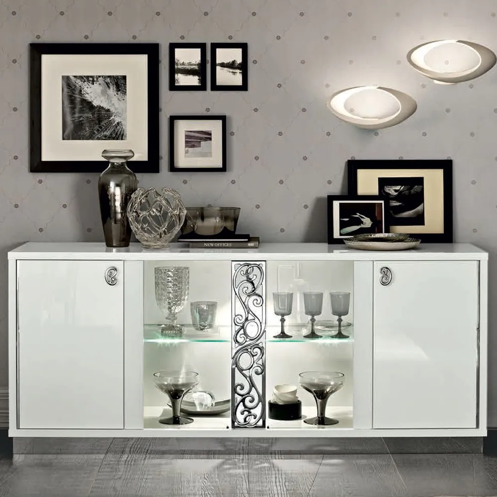 Roma White Italian Glamour Glass Door Buffet Sideboard